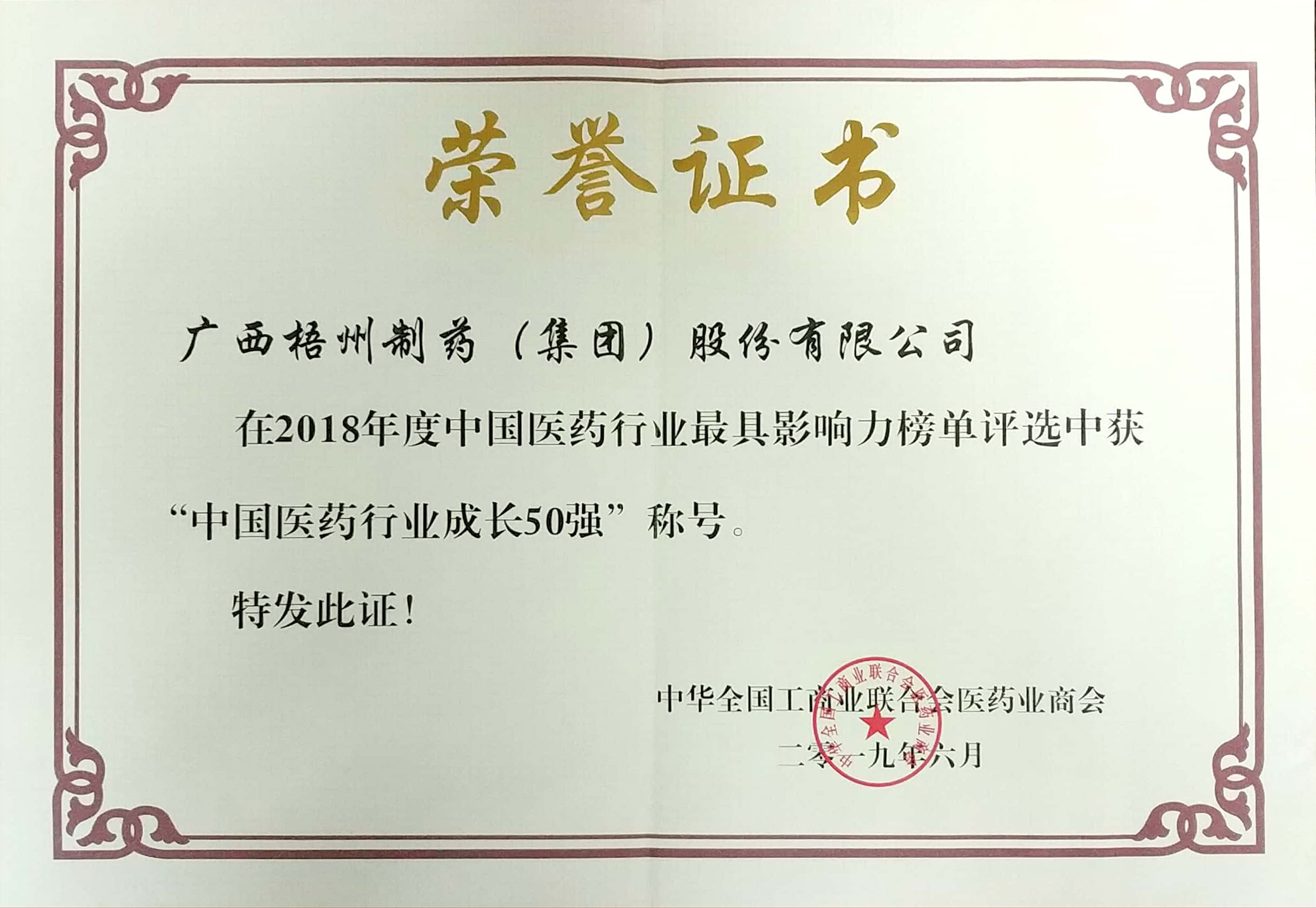 2018年度榮獲“中國醫(yī)藥行業(yè)50強(qiáng)稱號”