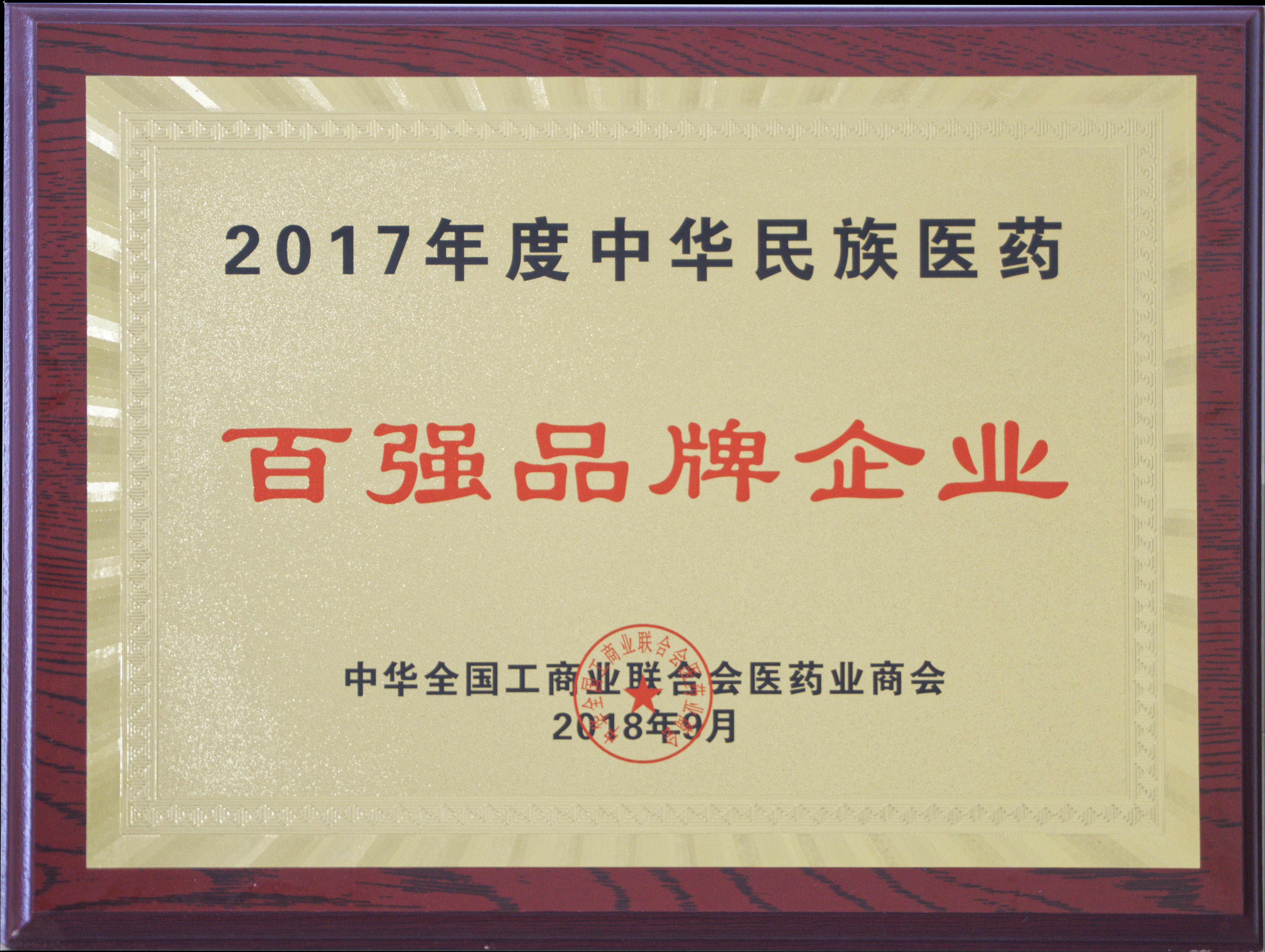 2017年度評(píng)為中國(guó)民族醫(yī)藥百?gòu)?qiáng)品牌企業(yè)