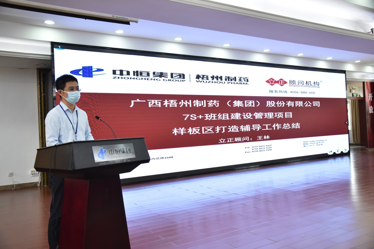王林顧問為本次7S樣板區(qū)打造輔導(dǎo)工作總結(jié),肯定了10個(gè)樣板區(qū)取得的成績(jī),提出了樣板區(qū)細(xì)節(jié)提升建議,并對(duì)后續(xù)7S管理推廣工作安排進(jìn)行簡(jiǎn)要說明。