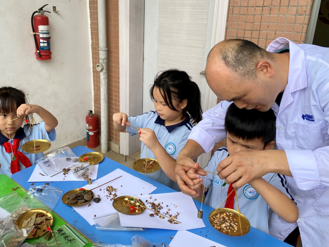 “原來中藥這么有趣!”在中藥辨識區(qū),孩子們圍著展臺興奮不已,通過觸摸、嗅聞藥材,辨識藥材的質(zhì)地與氣味,互動式的教學(xué)方式讓傳統(tǒng)中藥知識變得生動有趣?!袄蠋?,這個銅秤好精致!”戥秤體驗臺前更是熱鬧非凡,一桿桿古樸的戥秤吸引了孩子們的目光,專業(yè)藥師正手把手地教孩子們“一錢一兩”的精準(zhǔn)稱量,孩子們?nèi)褙炞⒌夭僮鳎惺苤嗅t(yī)藥文化的嚴(yán)謹(jǐn)與精妙。